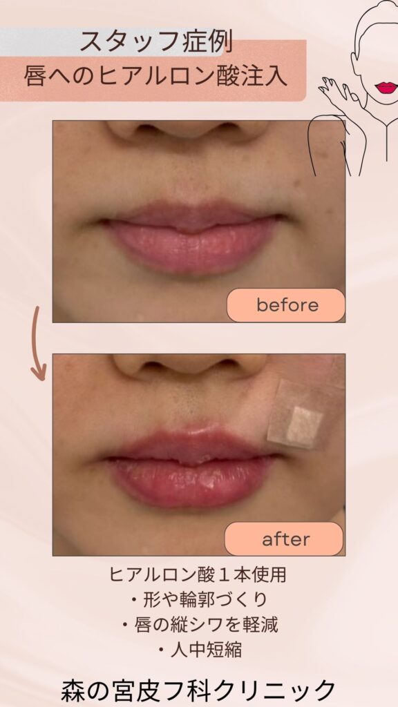 本日は、当院スタッフが実際に受けた 唇へのヒアルロン酸注入 の症例をご紹介します。